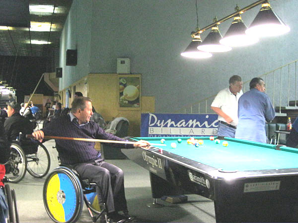 23-24 вересня 2012р. у клубі “Бінго”, у Києві, відбувся більярдний турнір. У цьому турнірі брали участь люди із порушеннями опорно-рухового апарату. В основному це були люди, які пересуваються на візку. Для них це була ще одна можливість продемонструвати, що люди з обмеженнями можуть брати участь у різних сферах соціального життя. Докладніше про турнір нам розповів Іван Миколайович Марусевич – голова всеукраїнської громадської організації «Асоціація інвалідів-спинальників України».