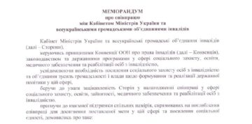Підписано Меморандум про співпрацю між Кабінетом Міністрів України і всеукраїнськими громадськими об’єднаннями людей з інвалідністю.
