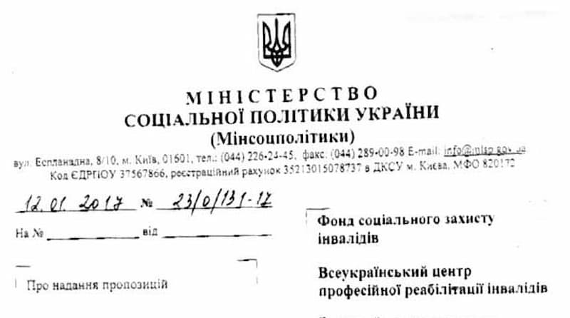 Пропозиції до перепрофілювання Всеукраїнського центру професійної реабілітації інвалідів (с.Лютіж), у санаторій для реабілітації осіб з інвалідністю.