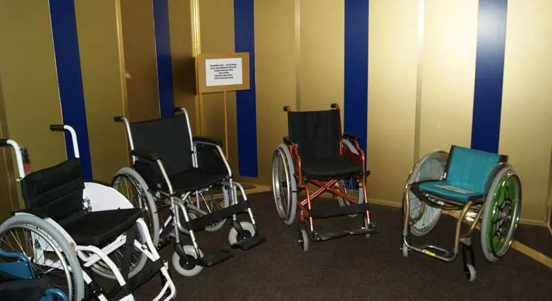 На підприємстві працює пункт прокату, де в асортименті палиці, милиці, ходунки та крісло колісне.