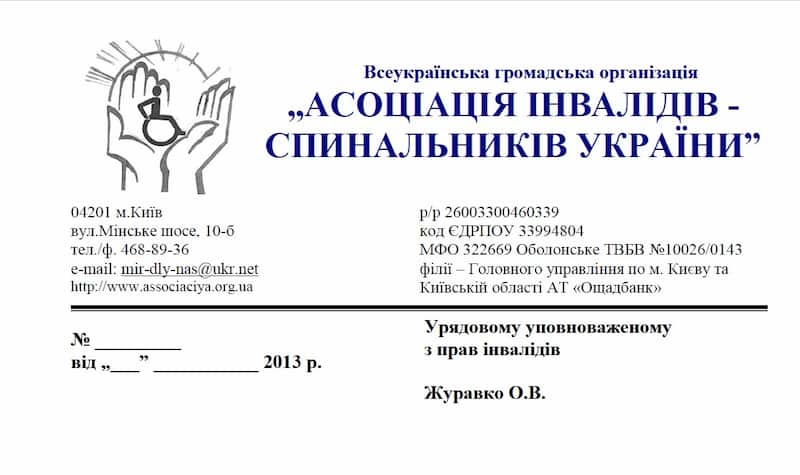 ВГО “Асоціація інвалідів-спинальників України” звертається з проханням до осередків, організацій-членів ВГО АІСУ та відвідувачів сайту, надати відгуки та доповнення до листа.