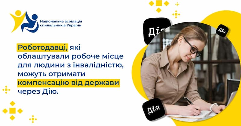 Роботодавці, які облаштували робоче місце для людини з інвалідністю, можуть отримати компенсацію від держави через Дію.