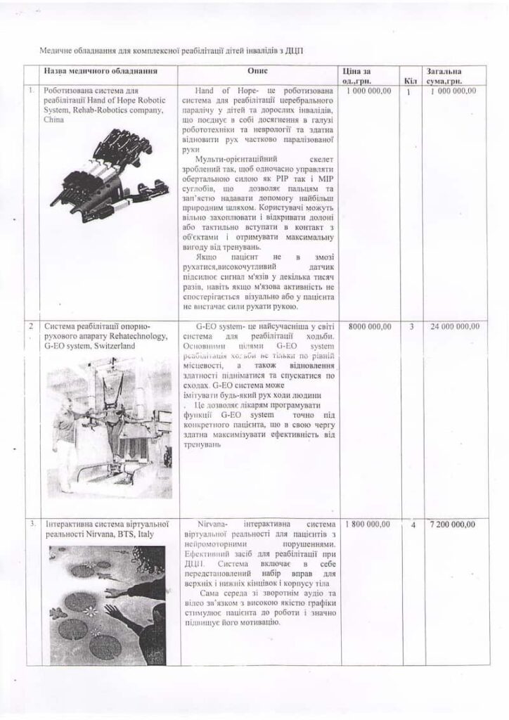 Під час засідання робочої групи прийнято рішення про закупівлю медичного обладнання для комплексної реабілітації дітей з інвалідністю з ДЦП на загальну суму 49 549 000,00 грн.